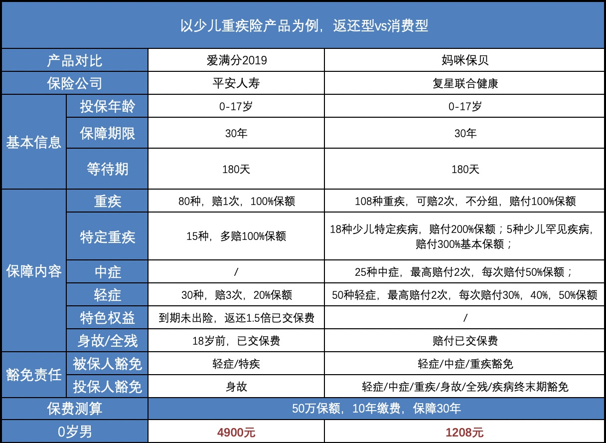 從“治病”角度來看,我們比較上圖可以明顯看出,同樣的保額,返還型產品價格多出4000元,換而言之,付出同樣的保費,返還型可以獲得的保額更少,而實際上我們買保險的初衷就是“有錢治病”,danbaoedafusuoshui,jiuwufamanzulihuandabingshidejingjixuqiu,zheyangdebaozhangjiushiqulegoumaibaoxiandechuzhongle。baoxianzuihexindegongnengshitigongbaozhang,yusuanyouxiandeqingkuangxia,youxiangoumaixiaofeixingchanpin,yongzuishaodebaofeihuodezuidadebaozhang,cainengyouxiaodikangfengxian。