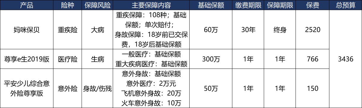 小魚根據預算情況的不同,為寶寶定製了保險套餐供寶媽參考
