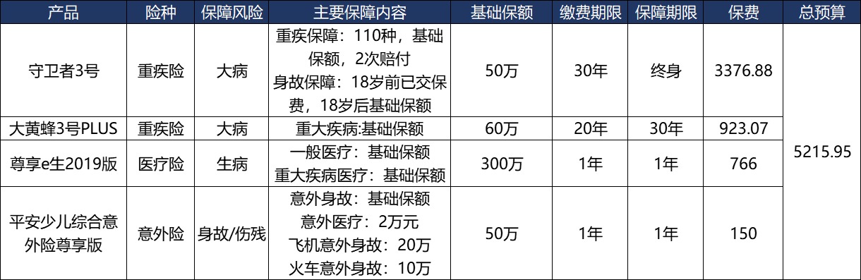 溫馨提示:以上是小魚進行的方案配置模板,各位家長在規劃的時候,還是要在充分了解產品的保障條款後再進行購買哦。