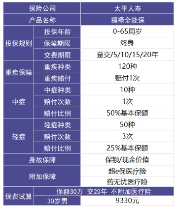 福祿全能保的性價比不是很高,價格相當於多次賠付的重疾險了,但保障卻很一般,不推薦購買。