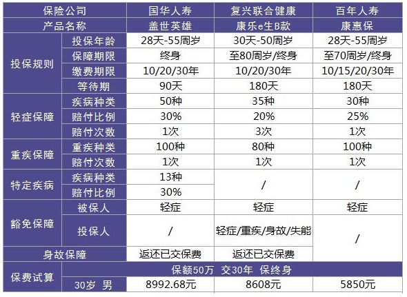 蓋世英雄的輕症設計的比較好,輕症賠付1次,8大高發輕症也包含在內,賠付基本保額的30%。保障的很全麵,保障力強!