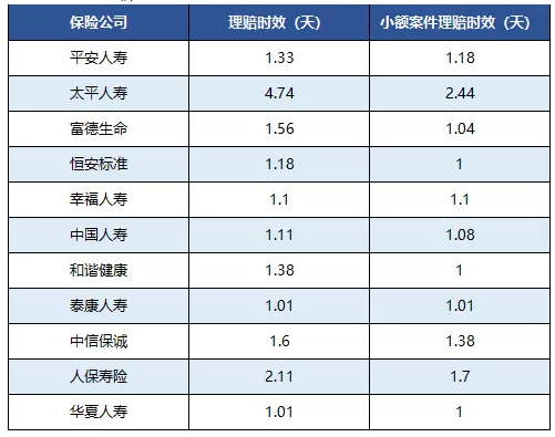 根據北京的數據,無論是我們經常聽到的大公司,還是不常見的幸福人壽、恒安標準等公司,在理賠的速度上整體差異不大。