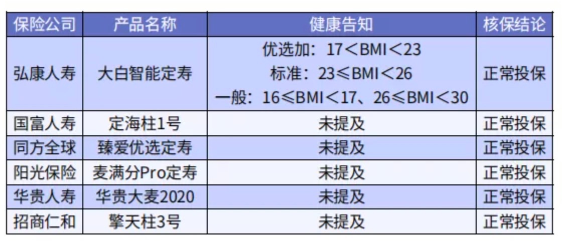 也就是說無論是超重還是偏瘦的人群,隻要能通過健康告知,都能順利買到壽險。