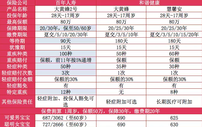 這款號稱可以“抗通脹”的保險是大黃蜂的升級版本,大黃蜂第1號和中荷童樂保、和諧慧馨安一起,堪稱兒童消費型重疾的三好學生。讓我們看一下有什麼不同之處。