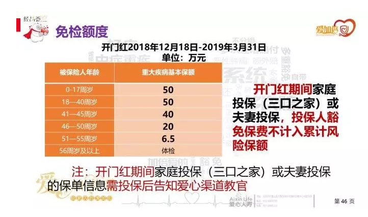 在產品開放期間,被保險人的豁免的保費不包括在保額的累積風險中。例如,丈夫和妻子都是35歲。根據規定,醫療豁免金額為500,000。即使被保險人是豁免,你仍然可以購買50萬保額的;