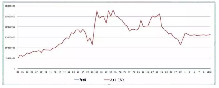 我們從出生人口來看。在60-70歲,80-90的嬰兒潮,出生人口呈上升趨勢,為經濟發展提供了足夠的人口紅利,以及70-80年和90後出生人口數量急劇下降。看一組出生人口數據曲線: