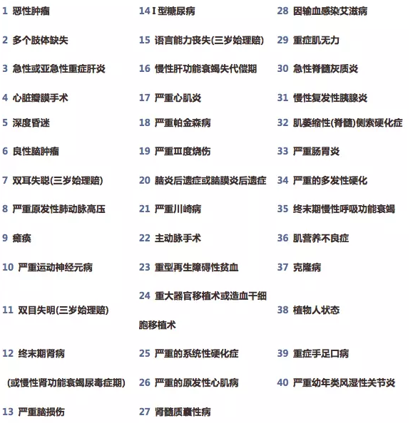 40種重大疾病。