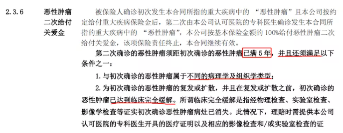 需要指出的是,再次診斷的“早期惡性腫瘤或惡性病變”在不同器官中可以是賠付。