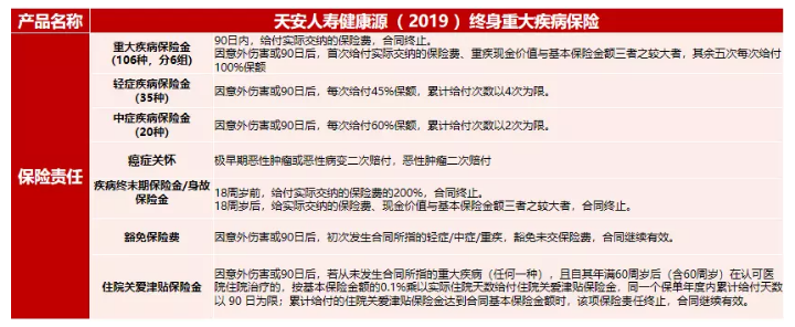 天安人壽保險健康源2019終身重大疾病保險的保險責任如下: