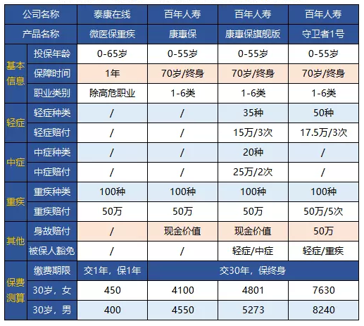 微醫保重疾是一年產品,百年的三個產品可以是保障終身,這是幾個產品之間的第二大差異。
