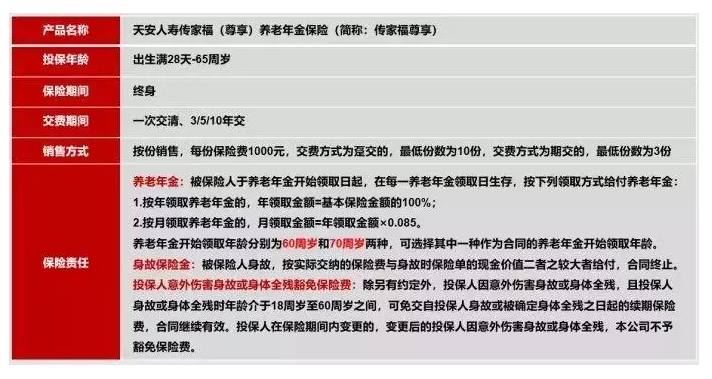 以上就是多保魚分享的關於天安人壽傳家福(尊享版)養老年金保險的分析,希望能給大家帶來一幫助,特別是想在這方麵投保的人群,更多的內容可以到多保魚的相關網站了解哦。