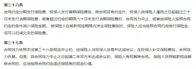 有些人跑來問多保魚,自己忘了交保費,該怎麼辦,保單會失效嗎?保險公司會拒絕賠付嗎?不用著急,我們先來看看“保險法”第36條和第37條怎麼說:
