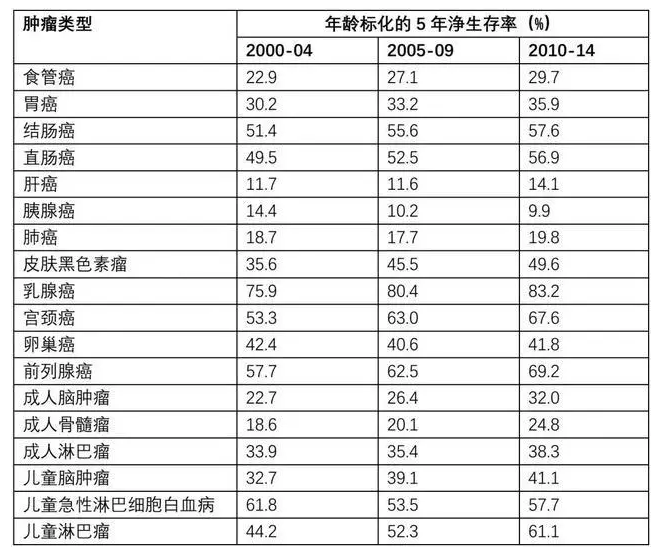 2、中國癌症患者的5年生存率穩步上升