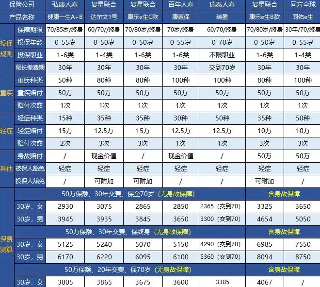 消費型重疾險的橫向對比