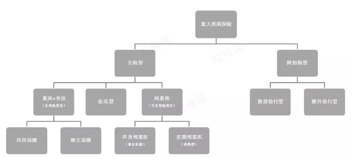 市場上常用的重疾險產品,大致分為兩類:主保險和額外保險。