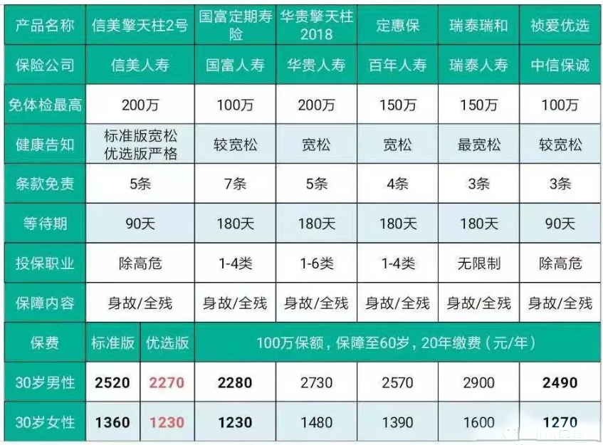 壽(shou)險(xian)是(shi)建(jian)議(yi)給(gei)家(jia)庭(ting)經(jing)濟(ji)支(zhi)柱(zhu)購(gou)買(mai)的(de),一(yi)般(ban)來(lai)說(shuo)壽(shou)險(xian)還(hai)分(fen)為(wei)定(ding)期(qi)壽(shou)險(xian)和(he)終(zhong)身(shen)終(zhong)身(shen)壽(shou)險(xian),多(duo)保(bao)魚(yu)是(shi)建(jian)議(yi)購(gou)買(mai)定(ding)期(qi)壽(shou)險(xian)的(de),保(bao)費(fei)低(di)是(shi)一(yi)方(fang)麵(mian),可(ke)以(yi)選(xuan)擇(ze)的(de)保(bao)障(zhang)期(qi)限(xian)也(ye)是(shi)比(bi)較(jiao)久(jiu)的(de),和(he)終(zhong)身(shen)保(bao)障(zhang)來(lai)說(shuo)沒(mei)有(you)什(shen)麼(me)差(cha)別(bie)。但(dan)是(shi)定(ding)期(qi)壽(shou)險(xian)也(ye)是(shi)友(you)好(hao)有(you)不好,多保魚選擇了幾個定期壽險的產品來做了個對比,可以了解一下。