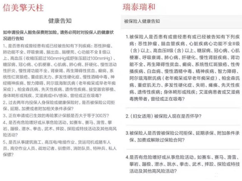 健康要求信美擎天柱2號仍然比瑞泰瑞和略微嚴格;