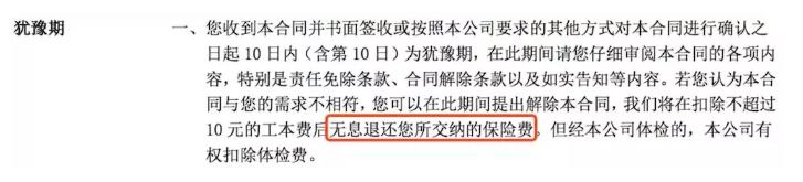 簡單地說,在購買保險後的10天內,如果您認為您購買錯了、後悔了、與代理商描述的不一樣;你可以在猶豫期內隨時申請退保,保險費用完全撤退!如果您在線下購買,可能會扣除10元的費用。如果猶豫期結束,即使被保險人違約,損失也會相對較大。