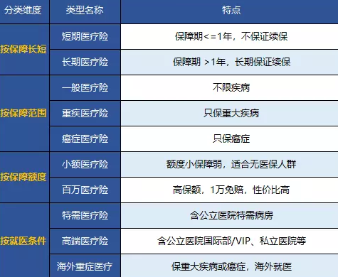 目前,市場上有很多種類的醫療保險:小額醫療保險、百萬醫療險、防癌醫療保險、海外醫療、高端醫療、 重疾醫療等。