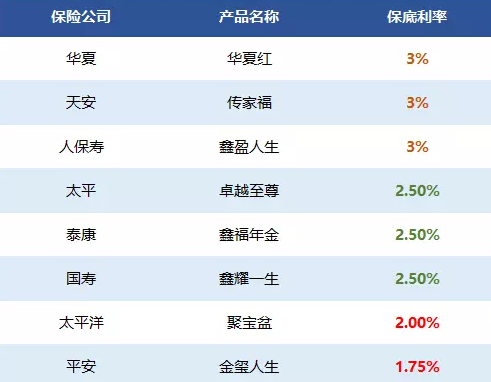 我們通過近幾年的幾種產品來看待保底利率的差異: