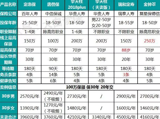 那保費到底能相差多少呢?多保魚選擇了6款市麵上主流的定壽進行對比: