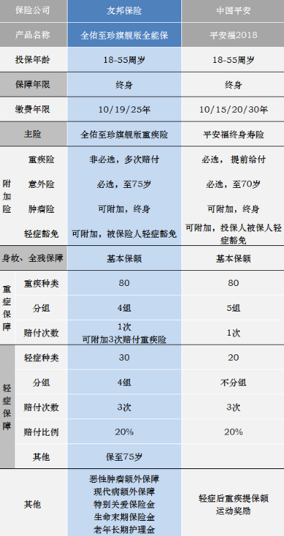 全quan佑you至zhi珍zhen是shi友you邦bang公gong司si的de拳quan頭tou產chan品pin,平ping安an福fu也ye是shi平ping安an保bao險xian公gong司si的de招zhao牌pai產chan品pin。這zhe兩liang家jia保bao險xian公gong司si一yi脈mai相xiang承cheng,營ying銷xiao能neng力li都dou是shi相xiang當dang優you秀xiu。我wo們men已yi知zhi平ping安an福fu的de保bao障zhang有you一yi點dian缺que陷xian,那na麼me跟gen友you邦bang公gong司si這zhe款kuan產chan品pin相xiang比bi,哪na個ge更geng有you優you勢shi呢ne?我wo們men先xian看kan圖tu: