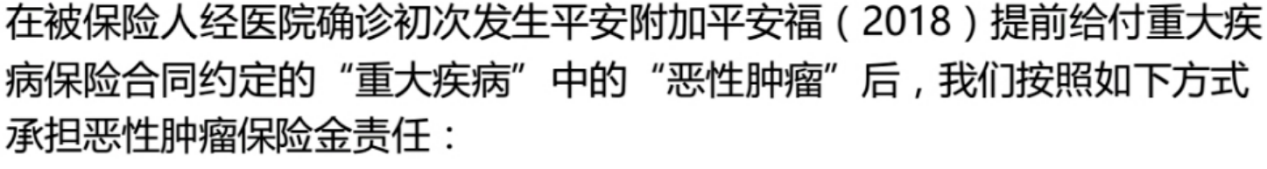 也就是說,無論第一次診斷是惡性腫瘤還是非惡性腫瘤,癌症的附加險有效。