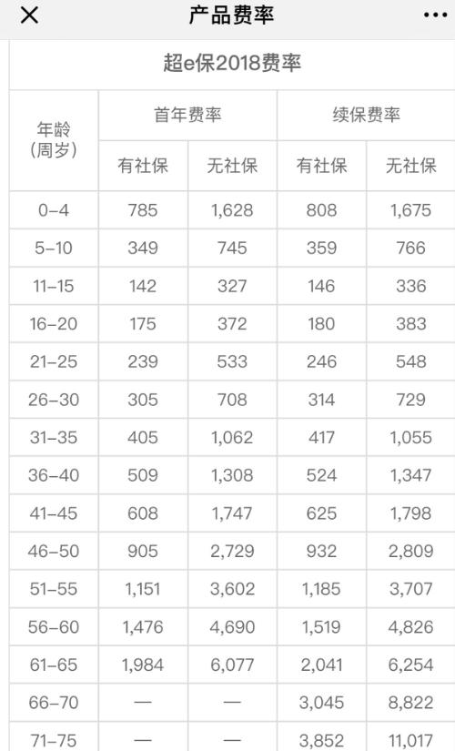 百萬醫療險“有或沒有社保”,保費的價格也有顯著差異(如下所示)。