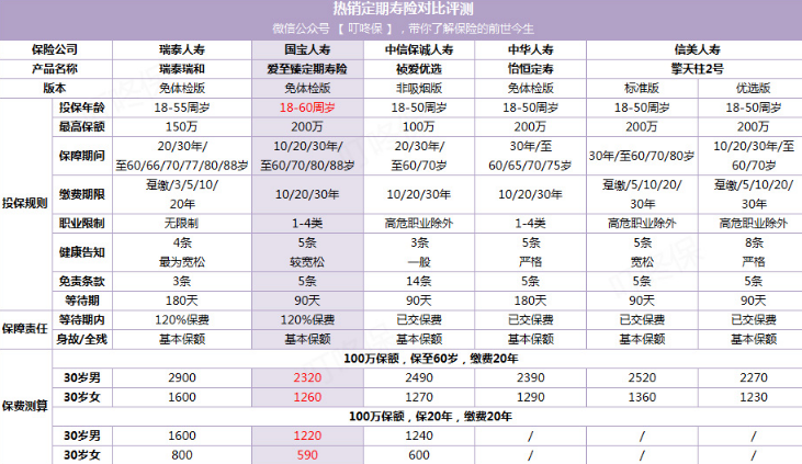 為了更直觀,我挑選了幾個市場上比較有代表性的定期壽險產品來對比。