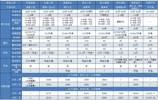 市麵幾款比較暢銷的消費型重疾險做下測評: