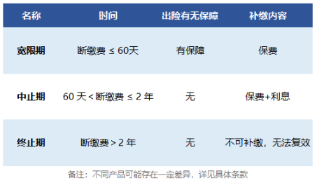 如果您在寬限期結束後未支付保費,你將不再享受保險。如果您確實忘記了付款,則可以在寬限期後的60天內補交保費。