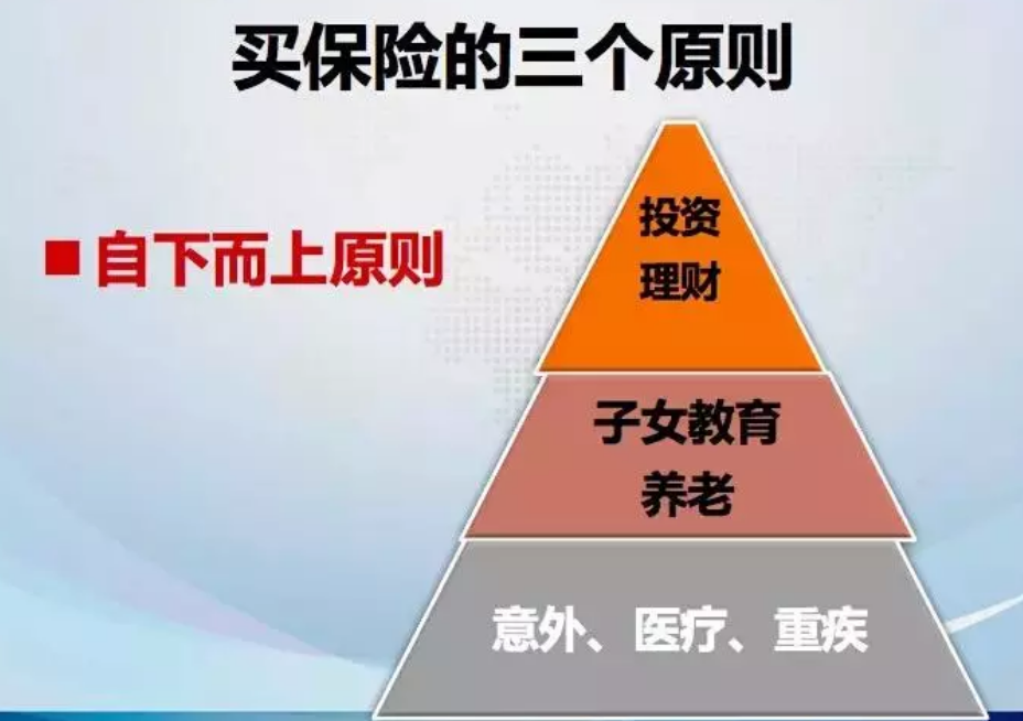 購買保險時,“自下而上”原則回答了“如何購買”的問題。我們說“高層建築是平地起的”,事實上,購買保險就像建造一座高層建築,基礎必須堅定。如果基礎不堅固,頂部建造得更好,裝修更豪華,有小地震就會坍塌。