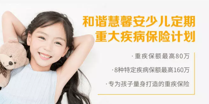 我wo們men知zhi道dao兒er童tong是shi整zheng個ge家jia庭ting的de重zhong心xin。每mei個ge可ke愛ai的de寶bao寶bao都dou是shi父fu母mu手shou中zhong的de掌zhang心xin寶bao。由you於yu兒er科ke疾ji病bing,尤you其qi是shi惡e性xing腫zhong瘤liu患huan兒er的de數shu量liang逐zhu年nian增zeng加jia,兒er童tong的de健jian康kang問wen題ti已yi成cheng為wei父fu母mu關guan注zhu的de主zhu要yao問wen題ti。如ru果guo家jia中zhong的de寶bao寶bao不bu幸xing遭zao遇yu重zhong疾ji,我wo們men作zuo為wei父fu母mu,無論花多少錢,我們都要給孩子治療。隨著醫學標準的發展,許多重疾可以治愈,但伴隨著高昂的治療費用。如果我們能夠提前為孩子規劃一個具有成本效益的重疾風險,那麼很多問題都可以解決。今天要評估一個兒童重疾險——和諧慧馨安少兒定期重疾險。