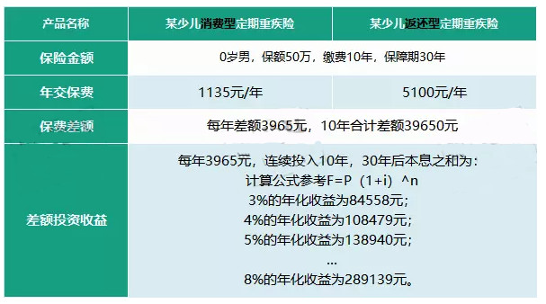 從上表可以清楚地看出,保費的差異非常大,而普通財務管理賺更多錢的收入也非常可觀。即使它3%的年化,30年(nian)後(hou)再(zai)賺(zhuan)回(hui)保(bao)費(fei)。轉(zhuan)彎(wan)也(ye)是(shi)合(he)適(shi)的(de)。但(dan)如(ru)果(guo)你(ni)購(gou)買(mai)返(fan)還(hai)型(xing)保(bao)險(xian),那(na)麼(me)這(zhe)些(xie)好(hao)處(chu)將(jiang)與(yu)你(ni)無(wu)關(guan)。所(suo)以(yi)告(gao)誡(jie)大(da)家(jia),不(bu)要(yao)觸(chu)碰(peng)返(fan)還(hai)型(xing)保(bao)險(xian)吧(ba)。你(ni)認(ren)為(wei)保(bao)費(fei)沒(mei)有(you)丟(diu)失(shi),事(shi)實(shi)上(shang),你(ni)的(de)無(wu)形(xing)損(sun)失(shi)更(geng)大(da)。