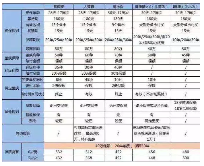 以(yi)上(shang)是(shi)市(shi)場(chang)上(shang)熱(re)銷(xiao)兒(er)童(tong)的(de)重(zhong)大(da)疾(ji)病(bing)保(bao)險(xian)。其(qi)中(zhong)童(tong)樂(le)保(bao)保(bao)障(zhang)具(ju)有(you)最(zui)多(duo)的(de)疾(ji)病(bing),特(te)定(ding)疾(ji)病(bing)的(de)保(bao)障(zhang)是(shi)最(zui)好(hao)的(de)。對(dui)於(yu)患(huan)有(you)嚴(yan)重(zhong)疾(ji)病(bing)的(de)兒(er)童(tong),它(ta)可(ke)以(yi)算(suan)作(zuo)性(xing)價(jia)比(bi)之(zhi)王(wang)。