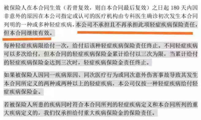 優勢5:等待周期罹患輕症,保單僅免除輕症,合同繼續有效。