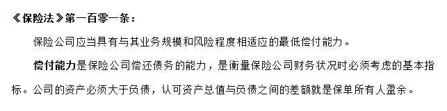 理賠的保險能力,歸結為償付能力有很大的關係。什麼是償付能力呢?我們來看看保險法的規定: